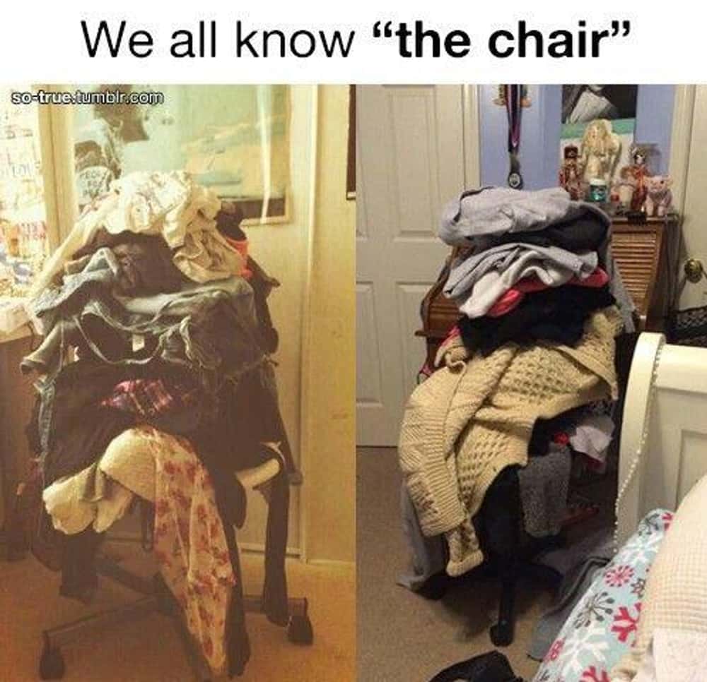 I have become a little obsessed with cleanliness and system optimization as of lately. I have a tiny multi-use room with a full sized bed. Naturally, my bed piles up with active-use *stuff* throughout the day. I would put a lot of that stuff on The Chair and sleep around some of what was left (since stacking things this well on a single chair actually takes quite a bit of effort):